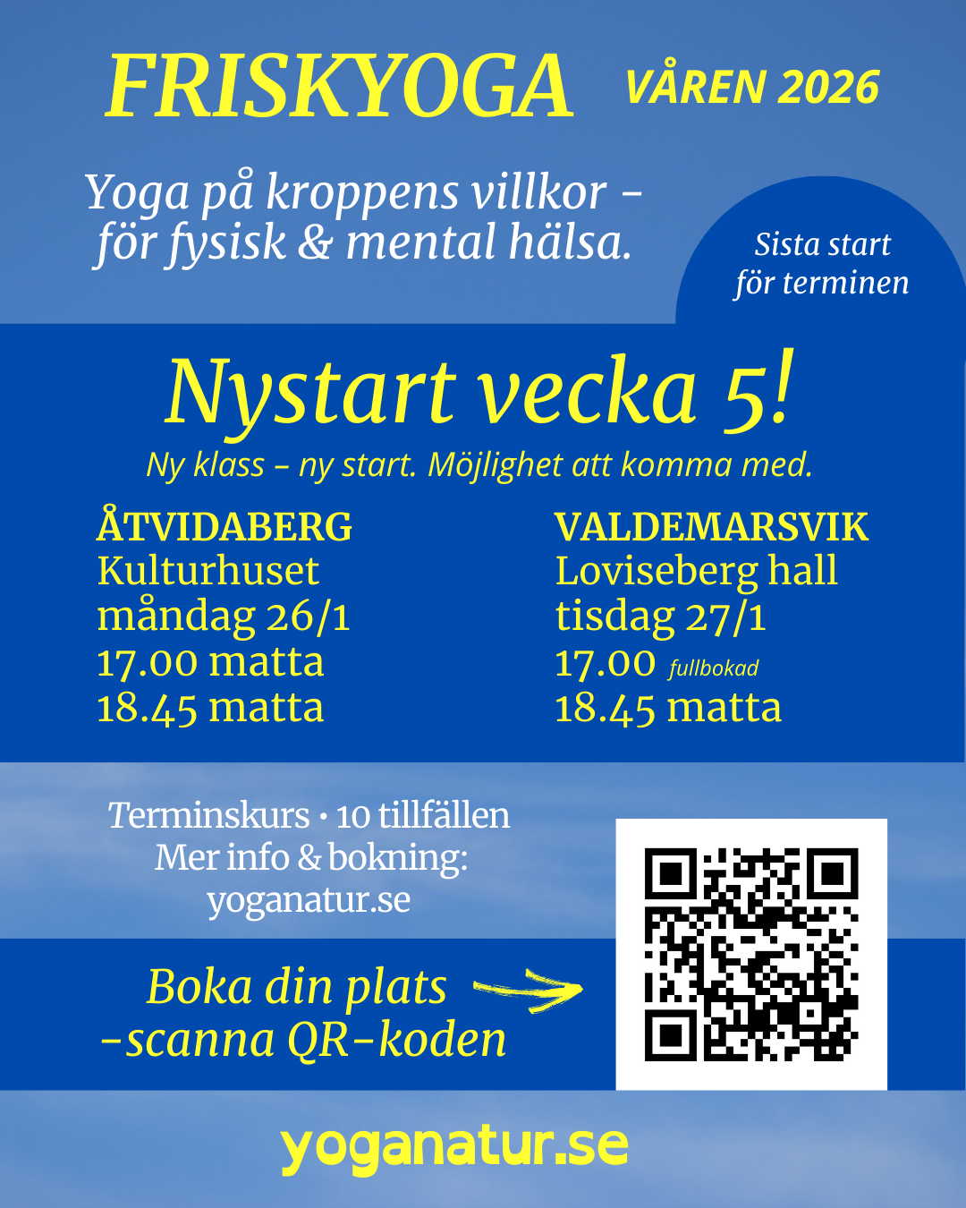 *senior=ålderspensionär, arbetssökande eller sjukskriven utan friskvårdsbidrag - gäller endast Friskyoga