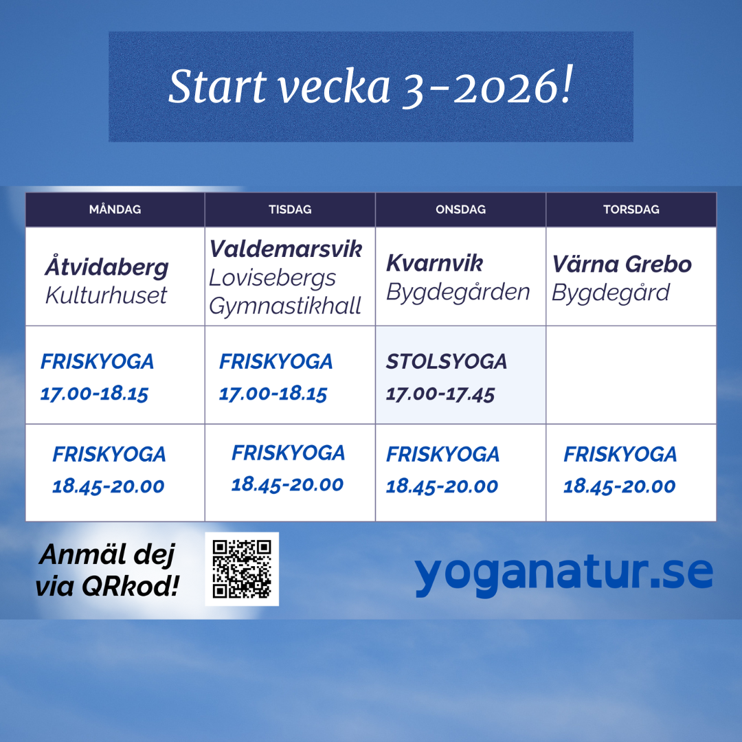 Välkommen att höra av dej till yoganatur@outlook.com , 0703-165 499 .